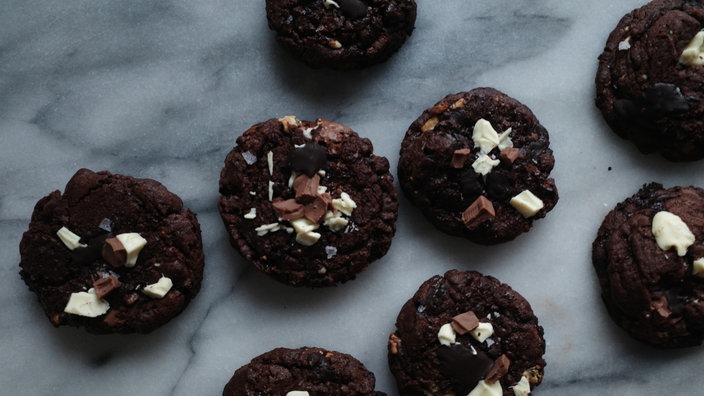 Theresa Knipschild ist ein großer Schokoladenfan. Unsere Konditormeisterin backt ihre Cookies daher gleich dreifach schokoladig: mit dunklem Kakao, Vollmilch- und weißer Schokolade. Diese Kekse sind einfach köstlich und schnell gemacht.