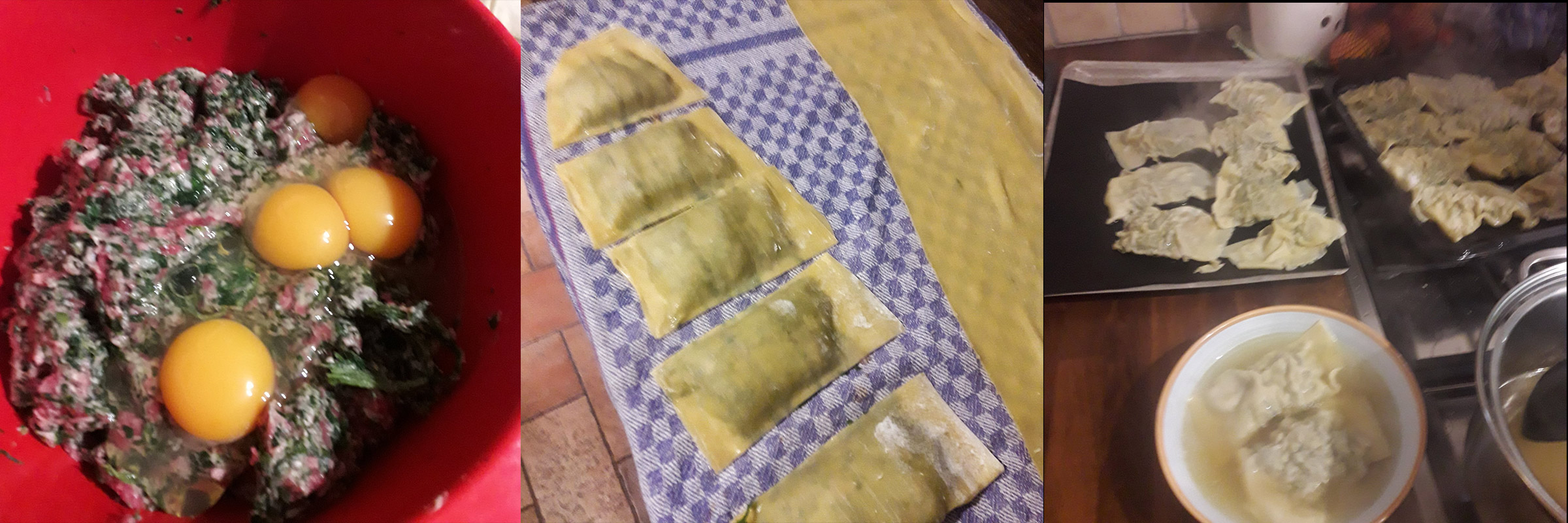 Nudelteig nach eigenem Gusto und den mit der Masse füllen.